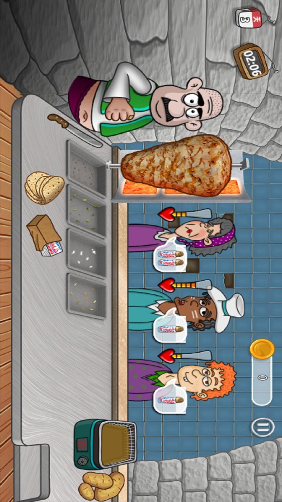 3、经营过程中赚取的金币,可用于升级厨房、添置厨具,这样既能加快美食制作速度、缩短顾客等待时间,还有更多刺激的挑战等着您自由解锁。