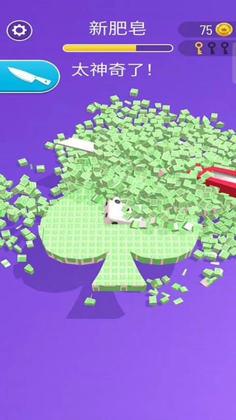 2、拥有精致的3D画面呈现,玩家只需通过简单的操作与挑战模式,就能用小刀在肥皂上开启趣味十足的切割挑战。