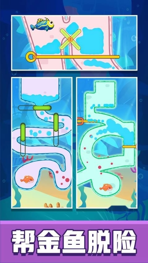1、玩家将化身为一条聪明的咸鱼,凭借灵活移动与机关互动,解救被困在珊瑚迷宫、渔网陷阱或是危险水域里的小鱼们。
