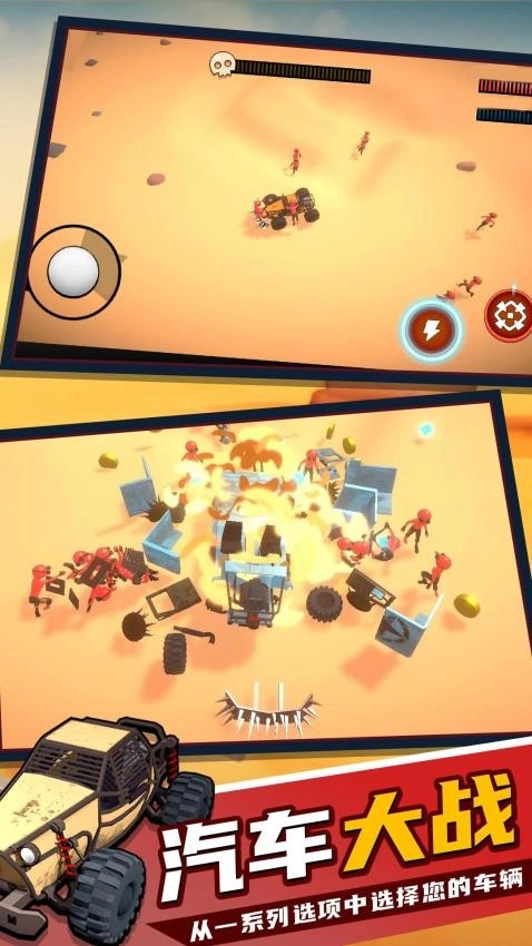 1、在汽车碰撞射击大战中,面对凶悍的僵尸,每辆车都具备独特的基础性能与驾驶手感,你可以依据自己的习惯和喜好来挑选合适的车辆。
