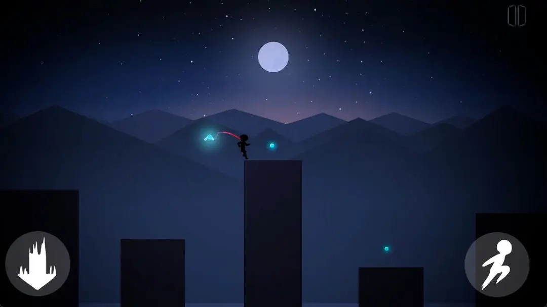 角色自动奔跑前进,控制跳跃与下坠即可前进。