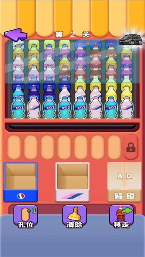 1、自动售货机里摆满了不同口味的饮料,玩家需要做的是将每种口味的饮料分类打包整理好,售货机下方会有各种颜色的箱子。