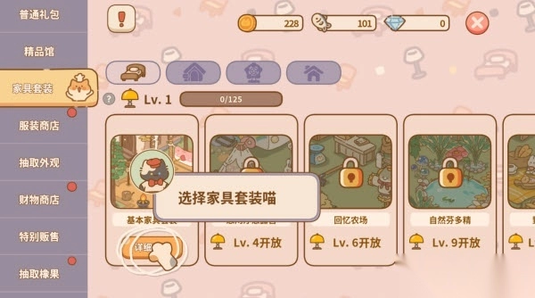 5、在商店里,你能够购买家居套装,用来装饰自己的家具区域。