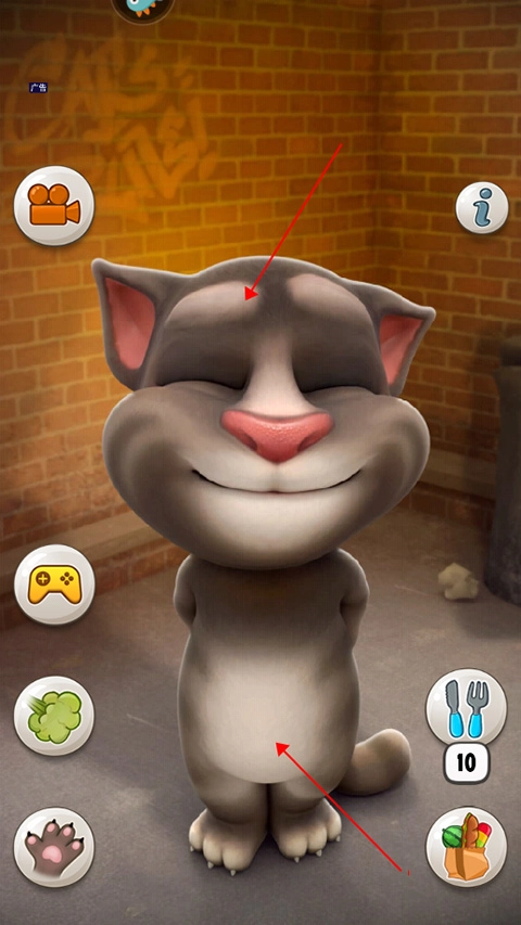 2、另外,你还可以抚摸汤姆的肚子或者头部,这时他会发出奇特的咕噜咕噜声。