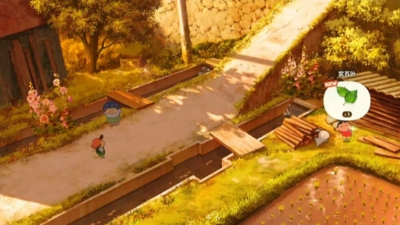 老奶奶一开始会被排水拦住去路,得等黄昏她离开后,才能去她田里找那个闪着光的紫苏叶。