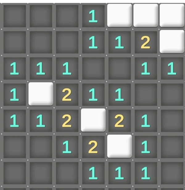 数字:如果某个格子显示的数字是1,意味着以它为中心的3×3区域内存在1颗地雷;依此类推,数字最大为8。