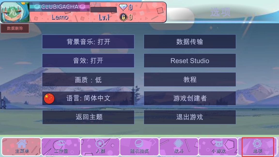 5、在正式开始之前,我们可以对背景音乐、音效以及画质等方面进行相关的设置。