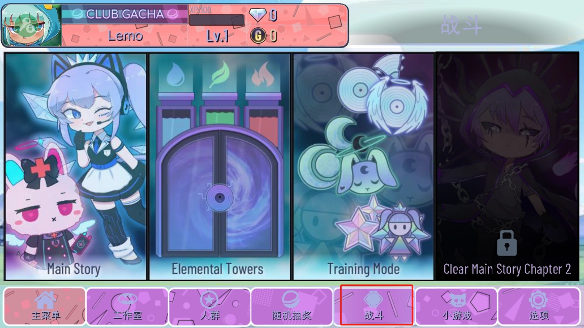 四种战斗模式可供选择:故事、训练、塔和腐败阴影