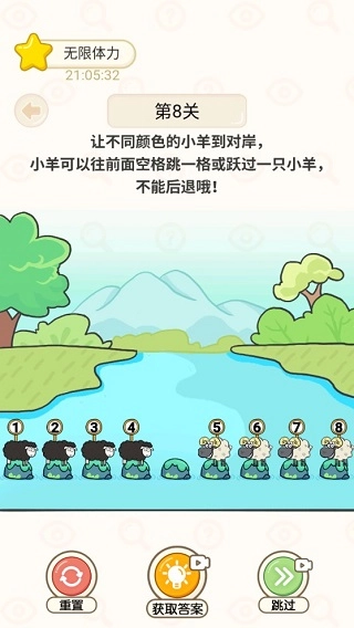 对于一些难度较高的关卡,玩家可以选择跳过或者直接获取答案。如果后续有了新的解题思路,也可以点击重置按钮,从头开始挑战。特色