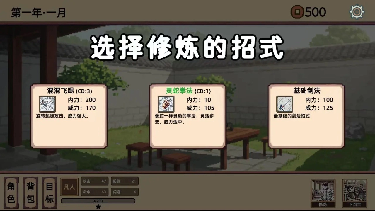 游戏中的修炼十分看重玩家的选择与取舍。当面对琳琅满目的武学招式和多样的成长方向时,你得在有限的资源与机会里做出最合理的决策——是一心深耕某一武学流派以求精进,还是尝试在多个领域间寻求平衡发展?这一切都由你的策略与规划来决定。