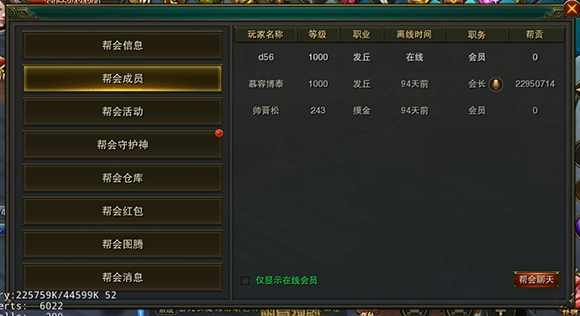 在成员列表里能够查看帮会成员的相关信息,还可以开展职位变更之类的操作。