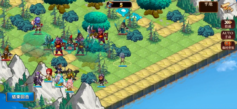 4、地龙现身之后,先让铁甲降低它的防御,精灵释放晕眩技能;要是晕眩没成功,就用石头把敌人围起来,争取在两回合内将其消灭。铁甲和摩尔要留着大招,吸血鬼预留两个攻击位,土法则保留晕眩技能,击败地龙后娜米再补充攻击,具体站位安排如下。
