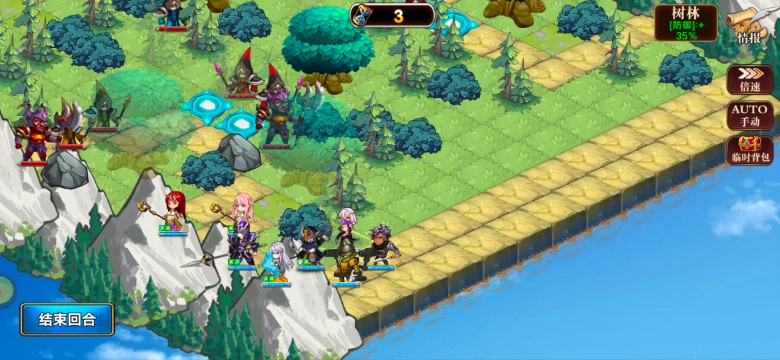 3、在第2到第3回合,娜米的攻击与魔法攻击会得到增强,主角则会从地图中跳出,具体站位情况如下。