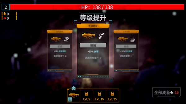 5、该模式为自动射击,玩家可通过击败虫群积累经验实现升级,每次升级时都能从多项强化选项里挑选其一。