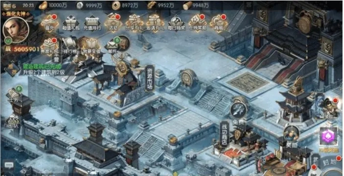 主城的建筑无法进行升级,玩家在主城可使用的设施包括皇宫、资源市场、战功商店、武将商店、国家军营以及武将酒馆。