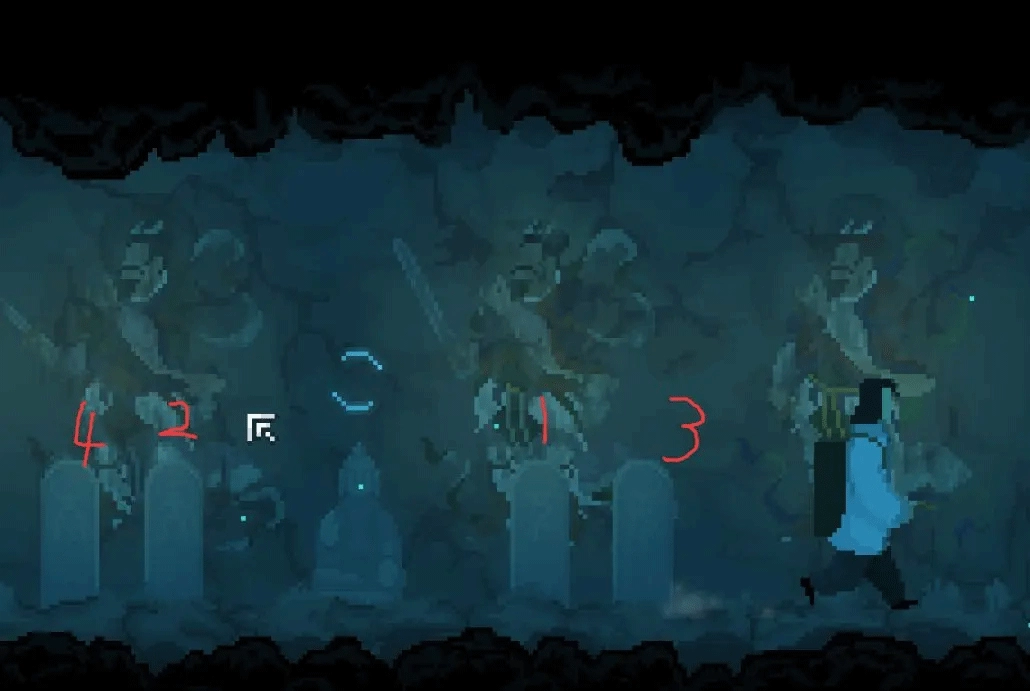 出门向左进入山洞,在倒计时结束前按顺序在石碑前站定,借助回溯开启机关
