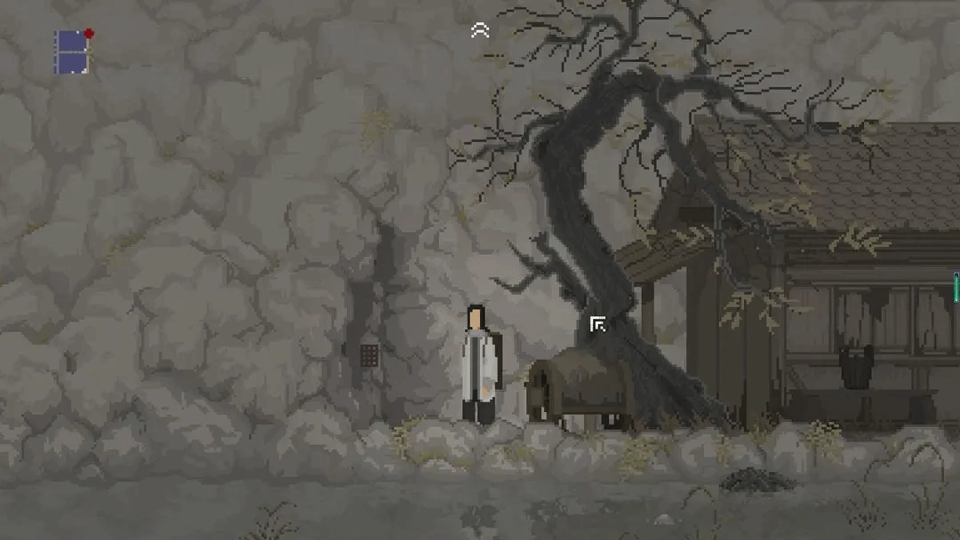 在画面呈现上经过了多番尝试,最终选定用像素画法来营造国画水墨的质感,这与以往多数作品的视觉风格都有所不同。