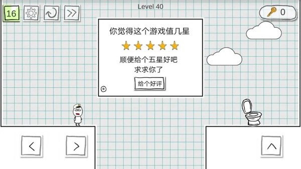 《小贱出宫2》是一款益智恶搞类游戏,尽管关卡设计丰富多样,但每一关的核心目标始终只有一个——帮助主角小贱顺利找到并进入厕所。若玩家未能在限定时间内完成这一任务,便会挑战失败。
