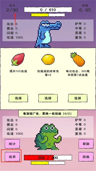 5、放弃后,会根据你通过的关卡数量给予奖励,并统计伤害。