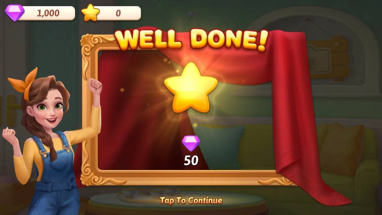 每通过一关三消谜题,就能获得“星星”,这些星星可以用来解锁各类装修环节,像清理大厅、粉刷墙面、添置家具之类的步骤都能靠它解锁。
