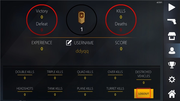 2、接下来玩家需要登录自己的账号才能进入战场,若还没有账号,可点击头像图标,再点击【logout】。