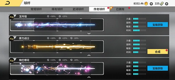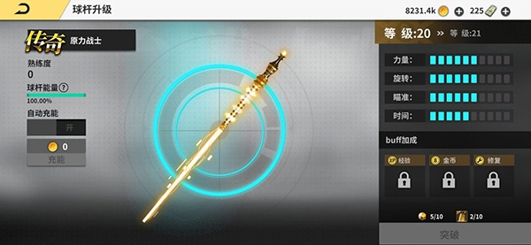 2、目前B级球杆仅有玩家的初始球杆(初始球杆不支持升级)