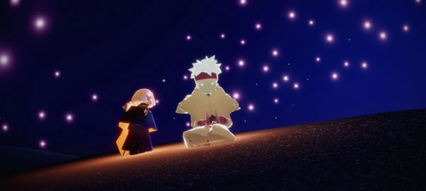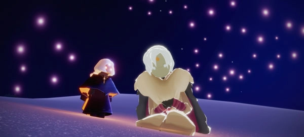 进入黑夜模式后,把视角转向后方,在靠近云层的地方能看到两个先祖,直接飞过去就能找到它们了。