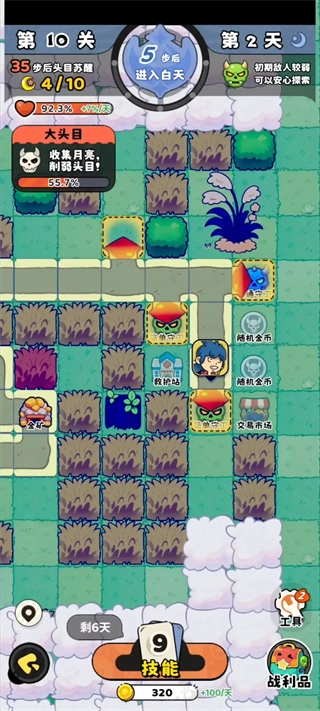 7、冒险前期要是打不过,白天就去踩踩空地,晚上就收集资源。能暂时忍耐就先忍耐,等流派升星、技能都成型了,后面就会轻松很多。