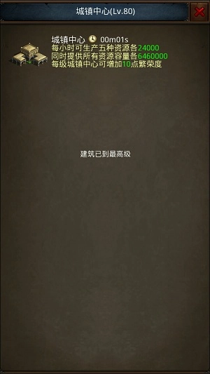 (2)功能:作为主建筑,它负责调控其他核心建筑的等级成长;随着自身等级的提升,不仅能提高资源的产量与存储容量,还会解锁郊外的资源地块。