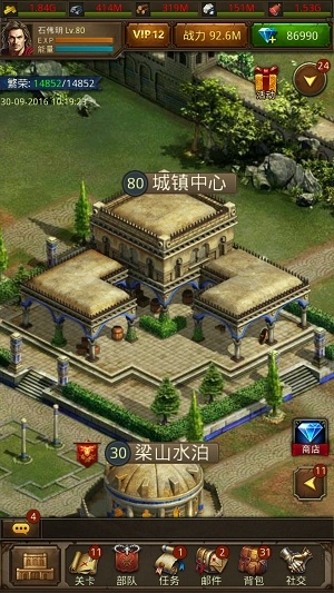 (1)城镇中心:需在城内的空地块上进行建造,建造过程会消耗资源且存在等待时间,使用钻石可立即完成建造(即“秒掉”等待时间);在建筑升级或建造的等待阶段,会占用1个建筑位(空间等同于建筑位);若升级时资源不足,允许直接用钻石替代所需资源来完成升级操作。