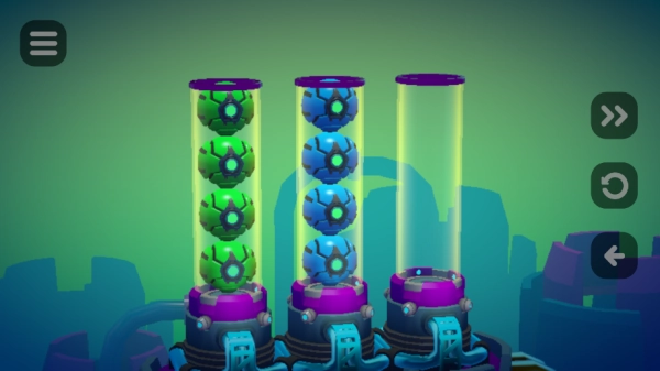15、点击之后会进入关卡,我们需要将颜色相同的球体放在同一圆柱体中(每一关都会有不同的关卡内容)