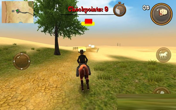 进入后,选择上图左上角的“New Game”就能开启新一轮。首先需要骑上左边的马,走到马的旁边,点击屏幕右侧的马匹按钮就能骑上去。
