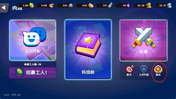 (2)点击科技面板后,右下角会出现造兵按钮,通过这个按钮也能进入造兵界面。