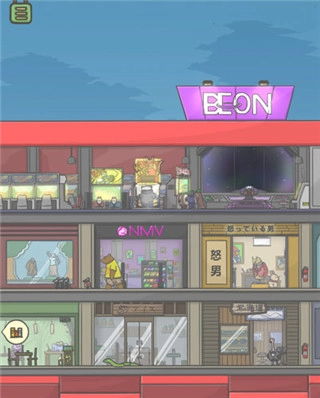 5、抵达大都市后,我们最先出现在一家旅店里,这家旅店的布局十分特别:三楼是餐厅,二楼是卧室,一楼则是浴室。大家可以点击右侧的按钮,前往旅店旁边的右侧街道。