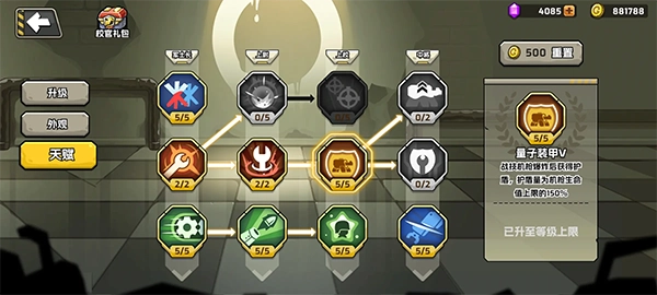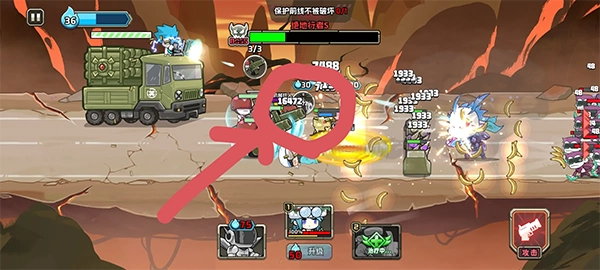 第一波选机械师,位置绝对不能越过第二个小兵的站位点,这样机枪刚部署就能被孙大圣的技能精准命中;要是超了就直接重开,别浪费时间。榴弹炮放在靠近汽车的位置,这样猴子打不到。机械师的一技能优先升技能积累,升不到就试试弹力炮管。等第一个孙大圣过来时,别往前冲,有杨师傅的落雷他基本就没了,但这时候前线血量通常很低,攒够40点就马上召唤盾叔。盾叔的一技能还是优先技能积累,升不到就选前线血量,站位要和机械师并排,走双盾流打法。靠杨师傅的落雷解决孙大圣只是时间问题,等孙大圣剩两条血时会放大招,这时候一定要把双盾同时放出来。