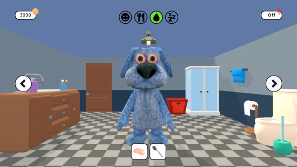 4、进入浴室后,可使用肥皂为它清洁身体,清洁完毕后,角色的卫生数值会随之同步增加。