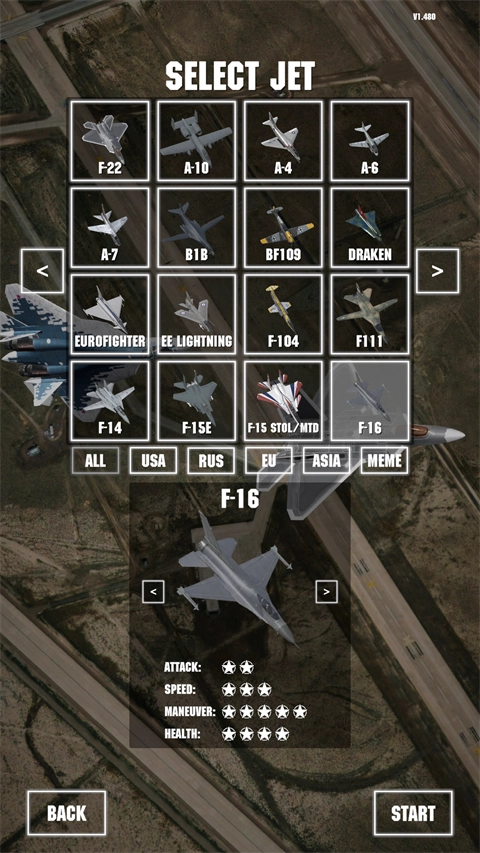 另外,喷气式战斗机还设置了10余种丰富模式,包含空中缠斗、近距离空中支援、舰船攻击以及轰炸机护航等各类作战场景,带来多元化的战术体验;100多个由玩家创建的任务,并且每日更新,保证内容不断新鲜,玩家总能找到适合自己的挑战。依靠丰富的战机选择、多样的玩法模式和高自由度的任务系统,Jet Attack Move为空战爱好者构建了一个沉浸感强、可玩性高的虚拟战场。