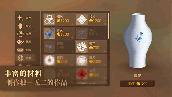 2、瓷器创作体验与经营玩法实现了有机衔接,比如经营获得的货币可用于购买花纹、图案、颜色等更多自定义素材,培养学徒出师后能代自己完成烧制环节,制作完成的瓷器评级会影响展览影响力,进而直接关系到展览收入与玩家成长,两套机制融合得相当出色,不会给人割裂或生硬的感觉。