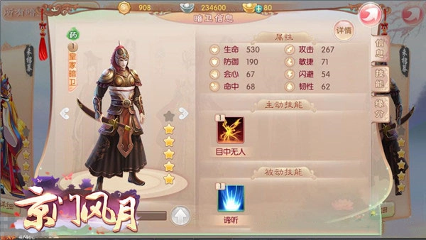 在京门风月折扣版里,每个人都能训练自己的暗卫。平日里多花些心思,每次提升自身技能时别忘了培养身边的暗卫,让他们和自己一起成长、互补短板,这才是最明智的办法。进阶时,分析暗卫的长处,不断调整暗卫力量,将来就算走遍南秦也不怕惹事的人了,这种乐趣只有亲自培养的人才能体会到。