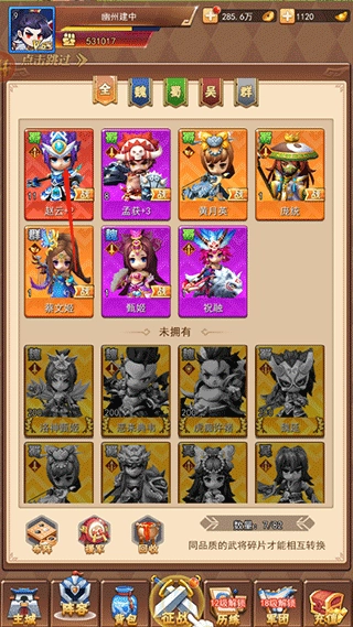 《萌斗魏蜀吴》是一款以三国故事为背景的Q版风格回合制游戏。在游戏里,你能见到众多名震天下的三国将领,每位将领都拥有独特的能力属性。作为玩家,我们将化身为主公,不断收服各类武将,率领他们征战沙场。在此过程中,我们需要持续培养自己的军团势力,最终实现三国一统的目标。