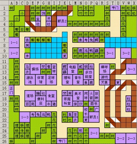 2、体育馆:位于名门学院后方,而非采用电脑室与图腾柱结合的设定。