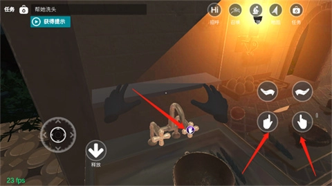 3、当左右手都拿着物品时,可同时点击下箭头与对应侧的手指手势,以释放该侧手中的物品。