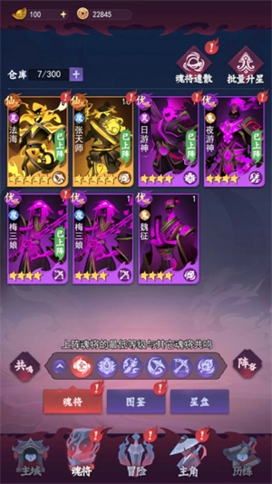 7、在主界面点击魂将按钮能够为你的角色提升等级,等级提升后角色会具备更强大的战斗力。