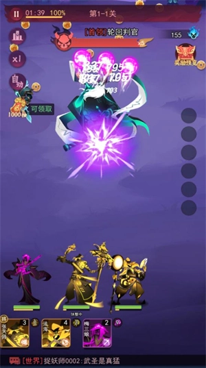 3、选定魂将后,角色会自动发起攻击,击败敌人后有概率掉落玉符与符咒。