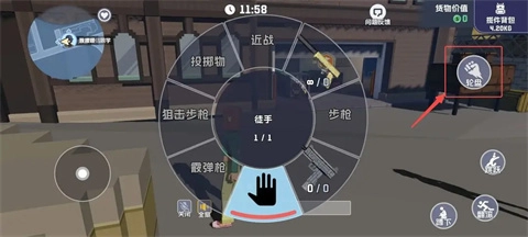 1、打开轮盘,选择武器。