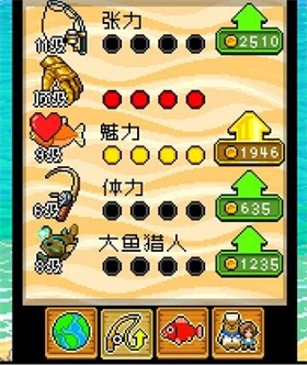 需要说明的是,钓上鱼后显示的那个xxg不完全代表重量,其实更相当于你获得的金币;然后是体力,关于体力……我觉得设计得挺鸡肋的,没什么实际意义。只要投力足够,完全用不上体力,差不多够用就行。