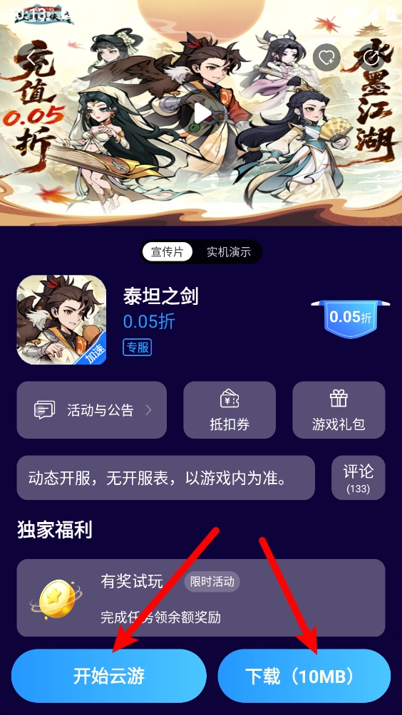 5、进入详情页,支持云玩火直接。