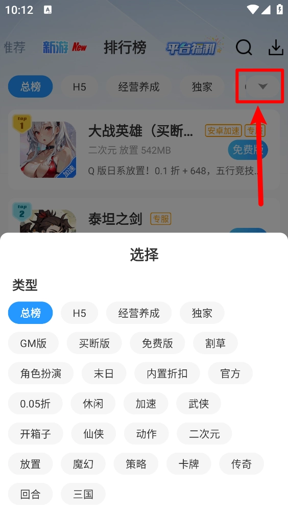 4、点击箭头所指的图标,可以根据类型选择。