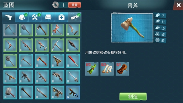 3、骨斧:特别适合砍树,以及砍怪物的头。