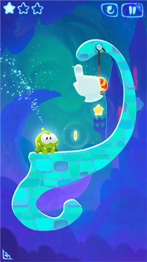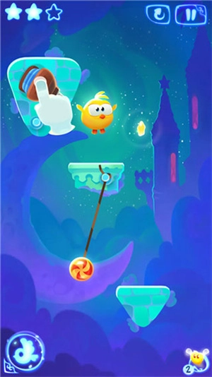 还有就是利用挤压空气瓶,能把主角吹到下方石头的上方,之后恢复原本的形态,这样就能吃到糖果了。要记住,挤压空气瓶的力度得把控好,不然主角会掉下去。